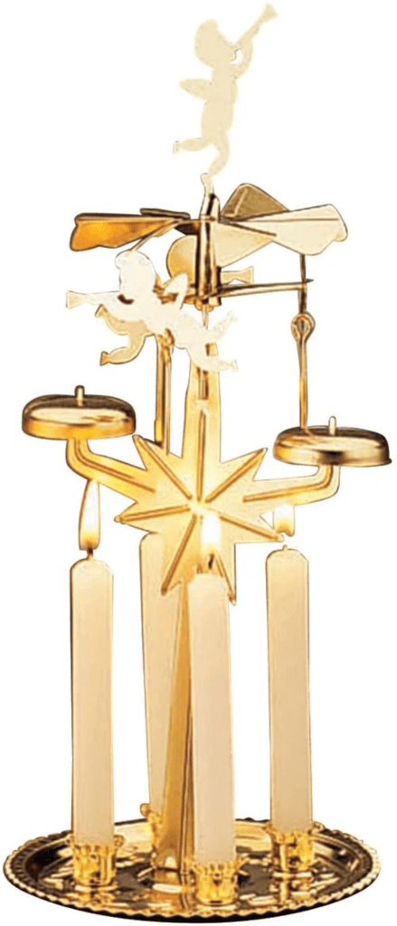 Another holiday focal point for me was the angel chime thingie. If you lit the small candles, the angels would turn due to the heat. Don’t ask me. I just enjoyed watching it turn.